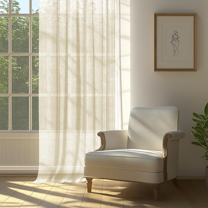 Their semi-transparent design creates a magical play of light and shadow, softening the sunlight into a golden glow, perfect for creating a cozy, relaxing atmosphere. Whether you want a serene bedroom sanctuary or a bright, welcoming living room, these curtains adapt beautifully to your needs.