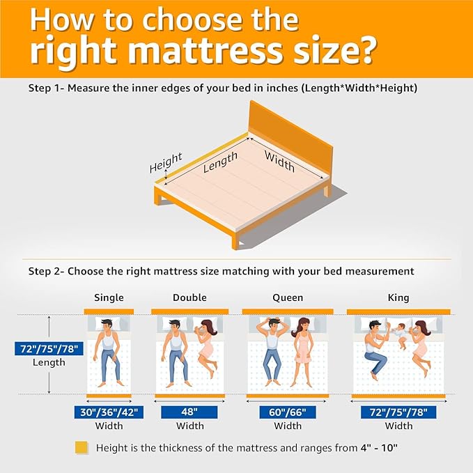 • : Length (198.1 cm) , Width (152.4 cm) , Height (12.7 cm)| – : bedroom design Experience the versatility of Sleepyhead Flip with two distinct sides for different sleep preferences soft mattress.