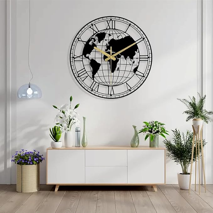 Style Enhancement: Modern clocks with unique designs, like the world map dial, reflect sophistication and contemporary taste.