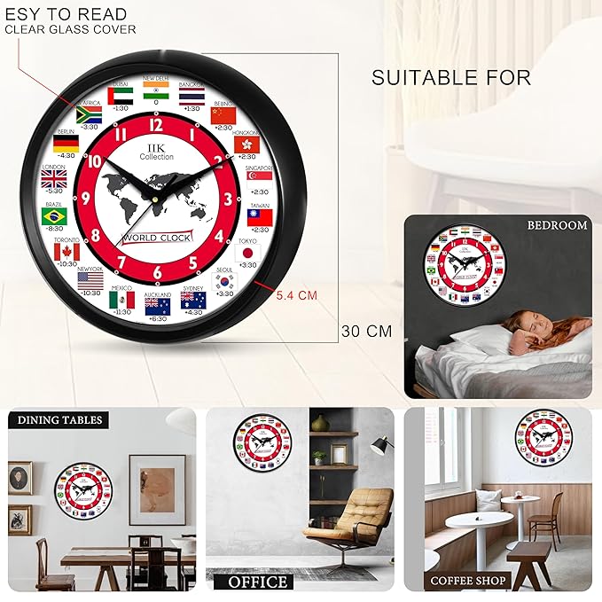 • Readable and large dial vs small digital clocks: Ideal for multi-room visibility.world time clock